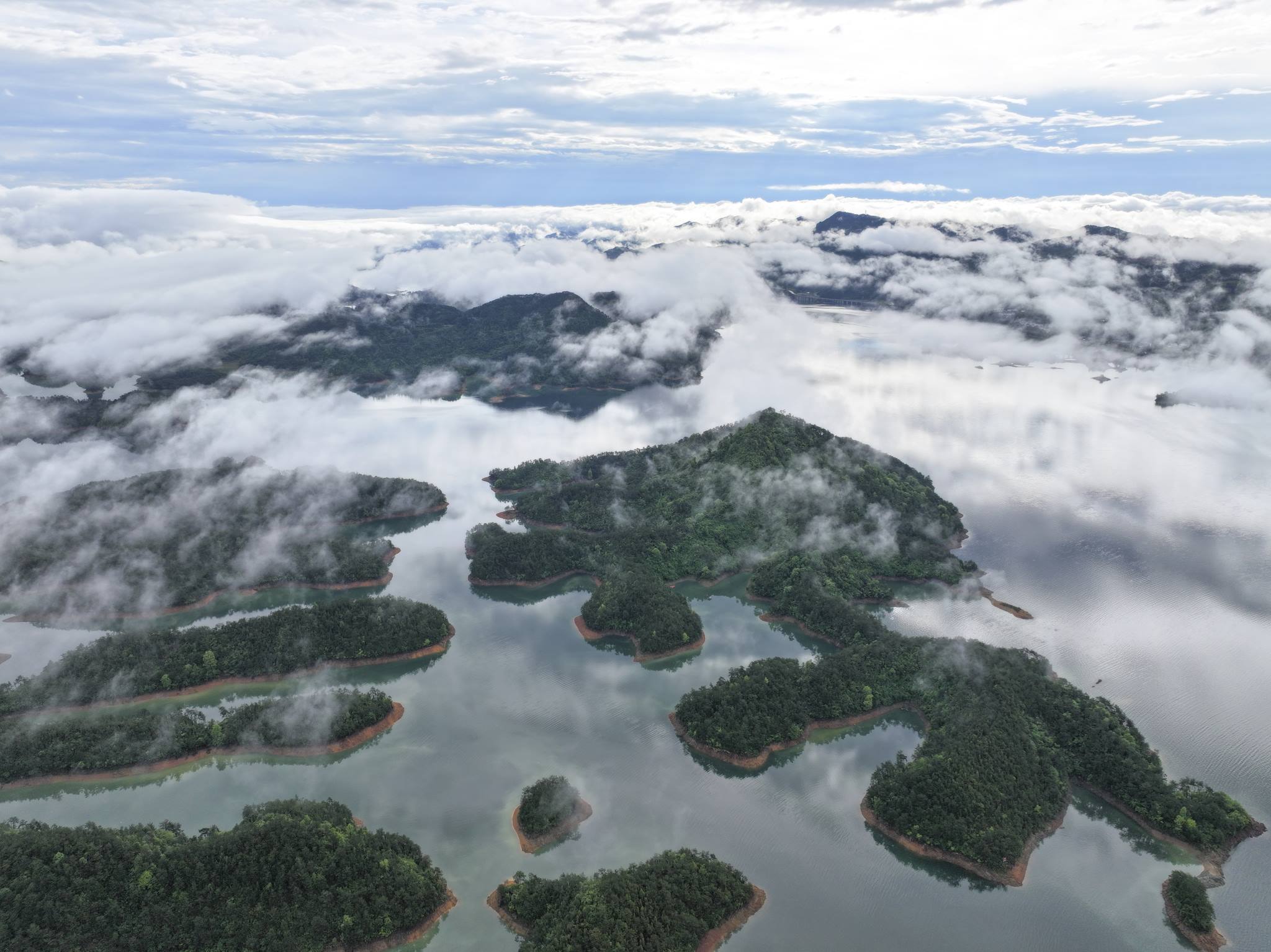 杭州:雨后千島湖晨霧繚繞