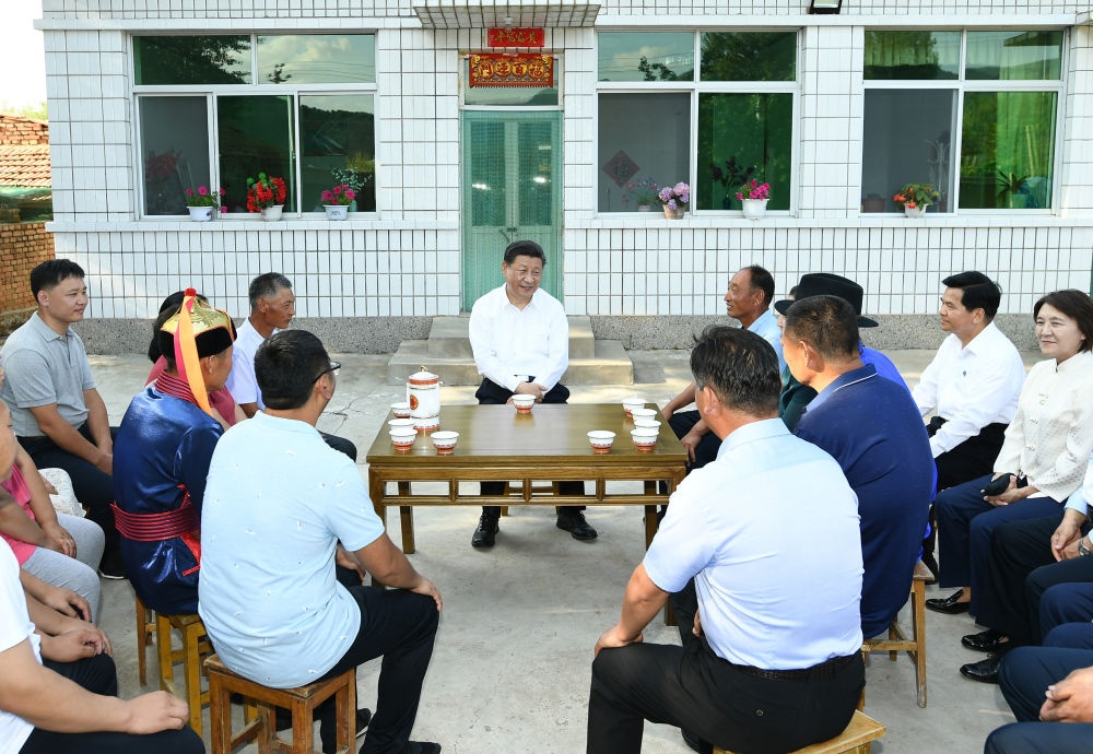 2019年7月15日至16日,習(xí)近平在內(nèi)蒙古考察并指導(dǎo)開(kāi)展“不忘初心、牢記使命”主題教育。這是15日下午,習(xí)近平在赤峰市喀喇沁旗河南街道馬鞍山村村民張國(guó)利家,同基層干部群眾代表座談交流。
