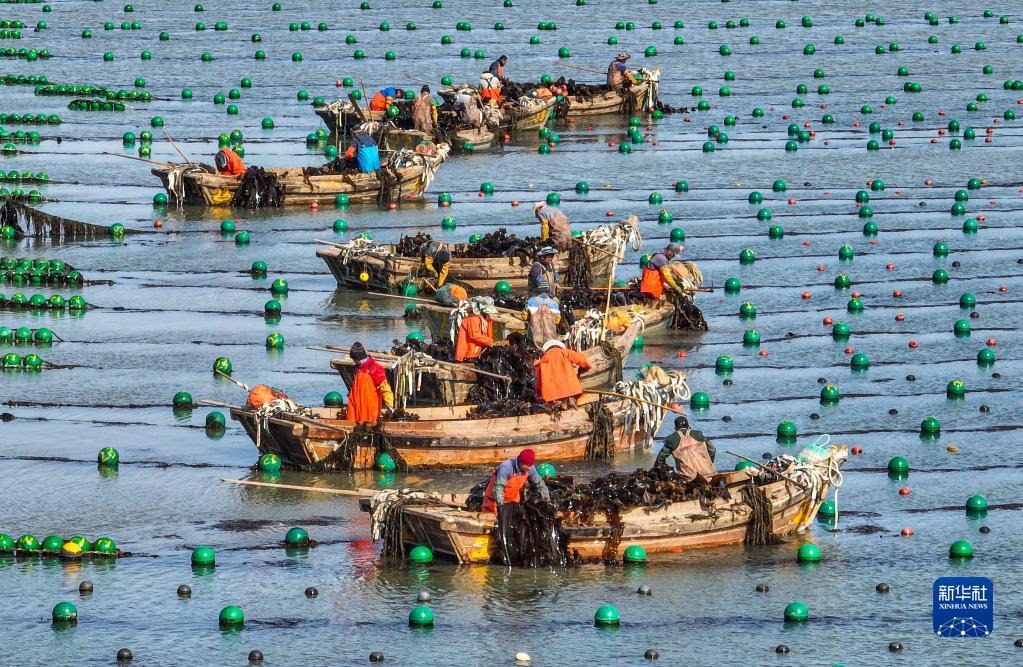 山東省榮成市被譽為“中國海帶之鄉(xiāng)”,海帶年產(chǎn)量43萬噸,其中鹽漬海帶近26萬噸,產(chǎn)品暢銷國內(nèi)外市場。新華社發(fā)(李信君 攝)