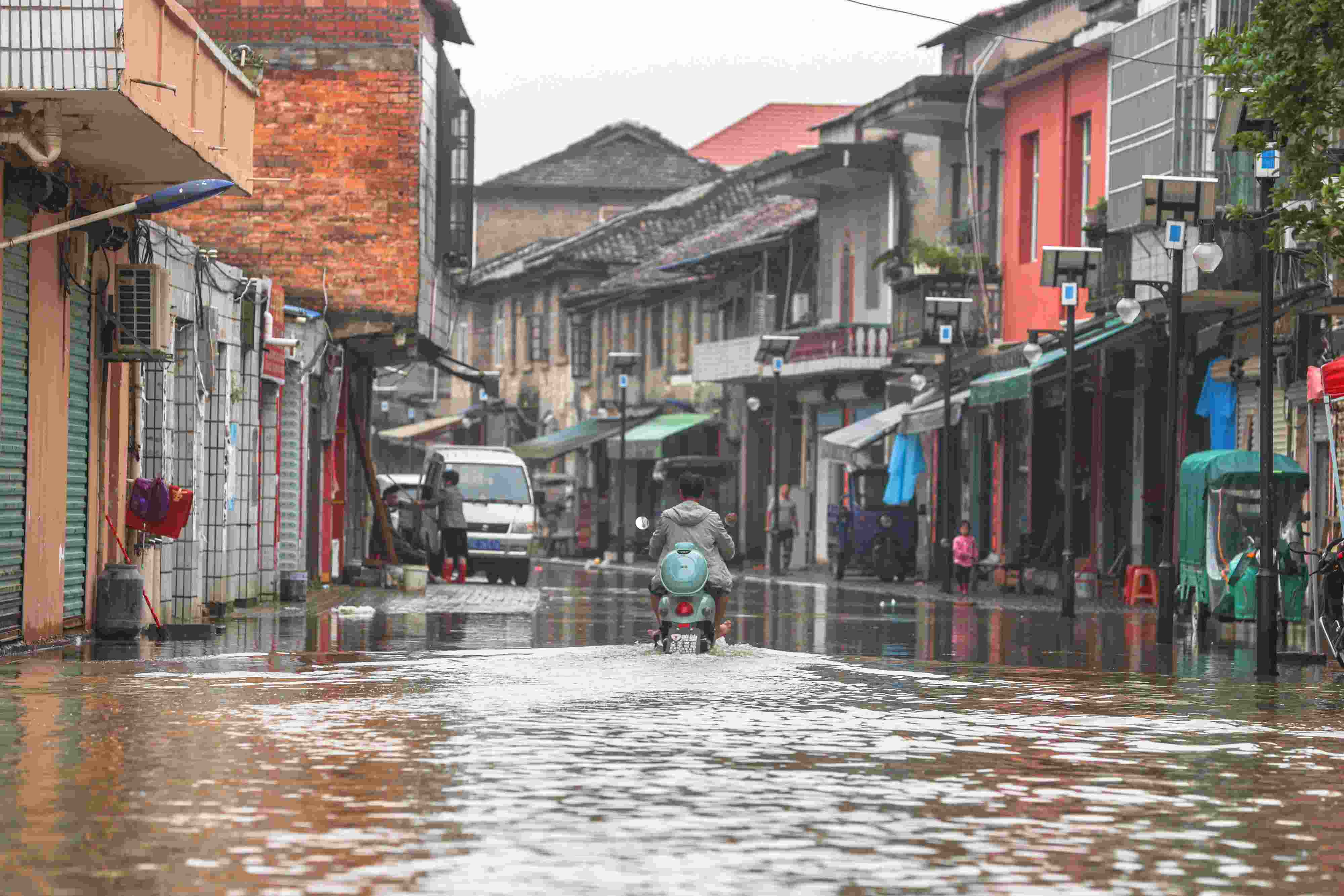 2023年5月6日,江西宜春,豐城市麗村鎮(zhèn)清豐堤河堤附近一村鎮(zhèn)受潰堤影響,出現內澇。 視覺中國