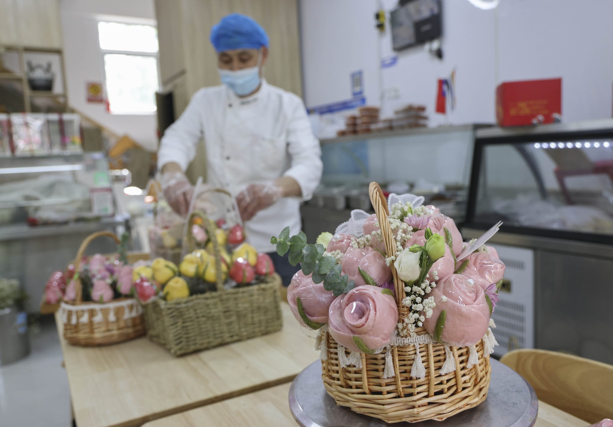 山東臨沂:母親節(jié)將至 花饃花籃走俏