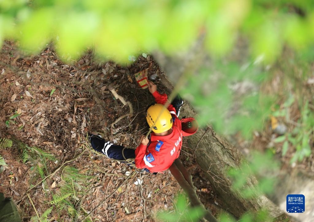 當日,湖南省張家界市武陵源區(qū)山地應(yīng)急救援隊在天子山開展繩索救援適應(yīng)性訓練的同時,義務(wù)撿拾叢林中的飲料瓶、塑料袋等垃圾,以實際行動保護景區(qū)自然生態(tài)環(huán)境。該救援隊自2020年成立以來,借助專業(yè)技術(shù)力量義務(wù)為各景區(qū)提供應(yīng)急救援服務(wù),并定期開展撿拾垃圾等公益活動。