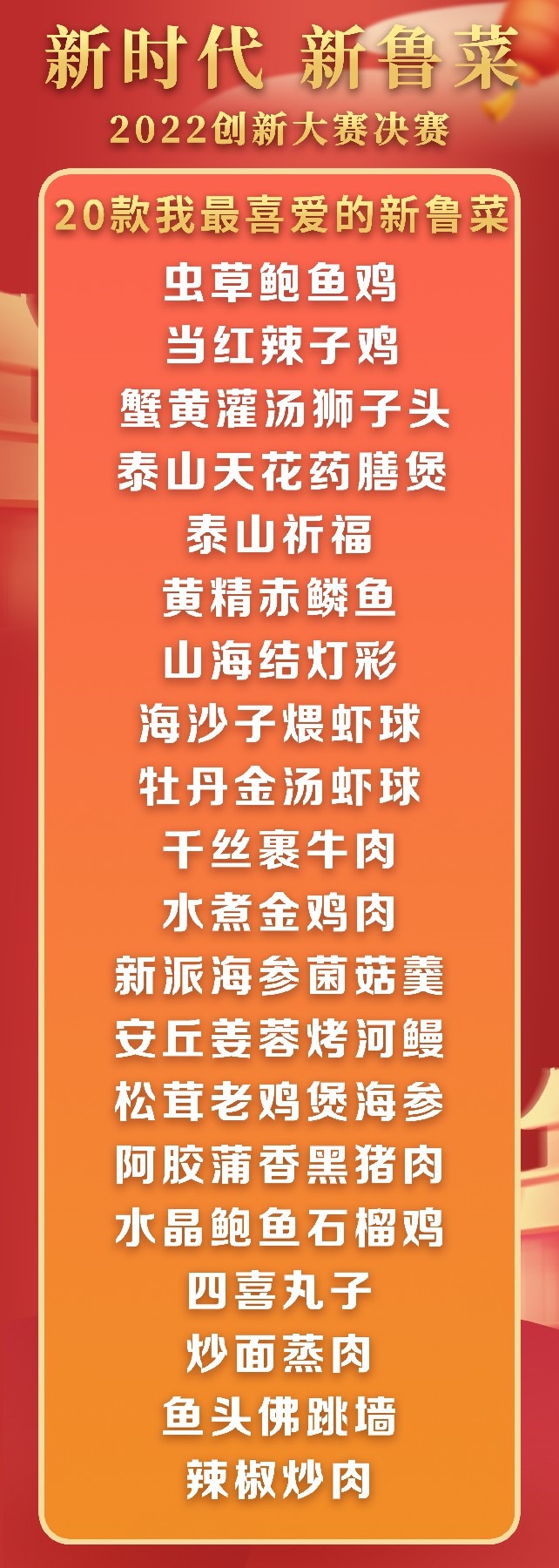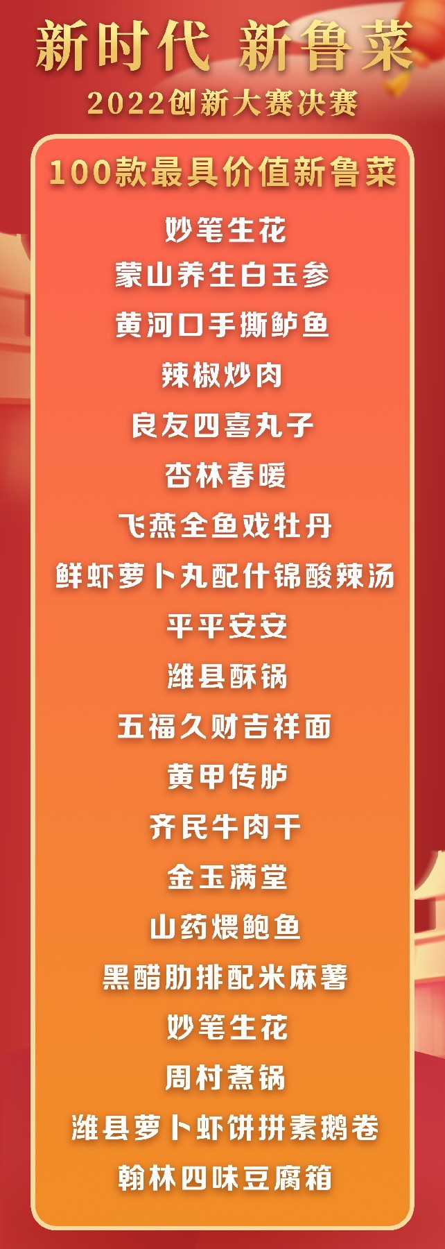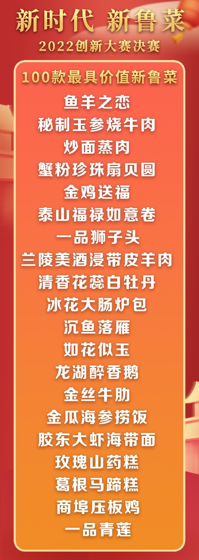 5月18日至19日,“新時代 新魯菜”2022創(chuàng)新大賽決賽暨頒獎活動在山東省濰坊市峽山區(qū)成功舉行,標(biāo)志著本屆大賽圓滿結(jié)束。經(jīng)過激烈角逐,大賽最終頒發(fā)出2022年度“十大魯菜創(chuàng)新菜品”、“20款我最喜愛的新魯菜”、“100款最具價值新魯菜”、“十大創(chuàng)新面點(diǎn)”、“預(yù)制菜轉(zhuǎn)化創(chuàng)新獎”和“海外最佳傳播獎”等獎項。此外,大賽組委會還頒發(fā)了“最佳組織獎”、“融媒貢獻(xiàn)獎”和“特殊貢獻(xiàn)獎”等獎項。