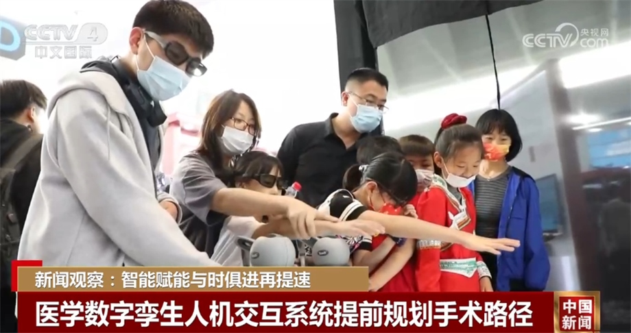 展會上,科研人員設計了一套基于全息現實的醫(yī)學數字孿生人機交互系統,通過對患者數據進行建模,在投影的孿生人上生成血管、器官等重要組織結構,輔助醫(yī)生進行手術的路徑規(guī)劃。