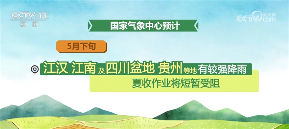 夏收夏種一般從每年5月中旬開始,至6、7月結(jié)束,是承上啟下、關(guān)系全年農(nóng)業(yè)收成的關(guān)鍵階段。夏收主要是收曬冬小麥和油菜,夏種是在夏收之后,整地播種夏玉米、夏大豆、移栽水稻等。我國各地夏收、夏種時(shí)間差異較大,不同區(qū)域、不同階段影響夏收、夏種的主要天氣也有所區(qū)別。??