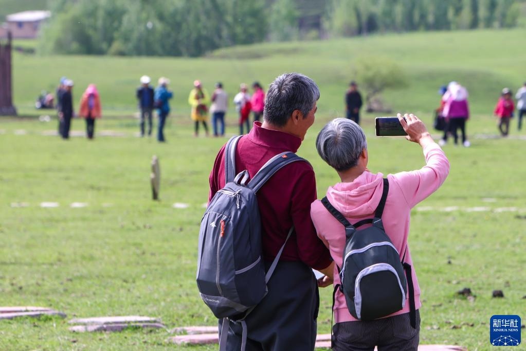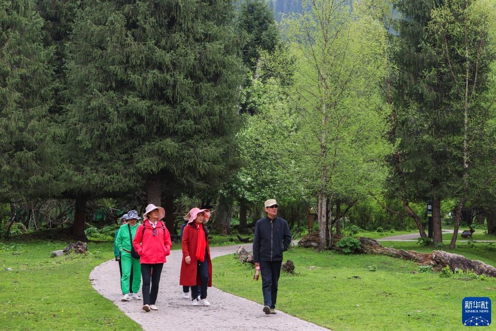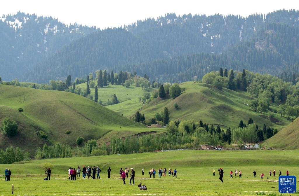 5月20日,游客在位于新疆新源縣的那拉提旅游風(fēng)景區(qū)觀光。   新華社記者 王菲 攝