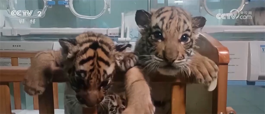 在飼養(yǎng)員的精心呵護下,目前5只虎寶寶成長健康。由于尚未足月,小家伙們各方面的身體機能還未能完全適應外界氣候,只能待在恒溫育幼房。