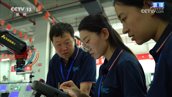 武漢華中數(shù)控股份有限公司副總裁李社林:“高職學校把數(shù)控的理論已經夯實了,但是應用,學校不可能像企業(yè)這樣實時更新。在這個課程里面不但可以開數(shù)控機床,還能開工業(yè)機器人,同時還能夠進行智能制造教學,這樣就把原來的單一技術,變成整體的智能制造技術訓練。”