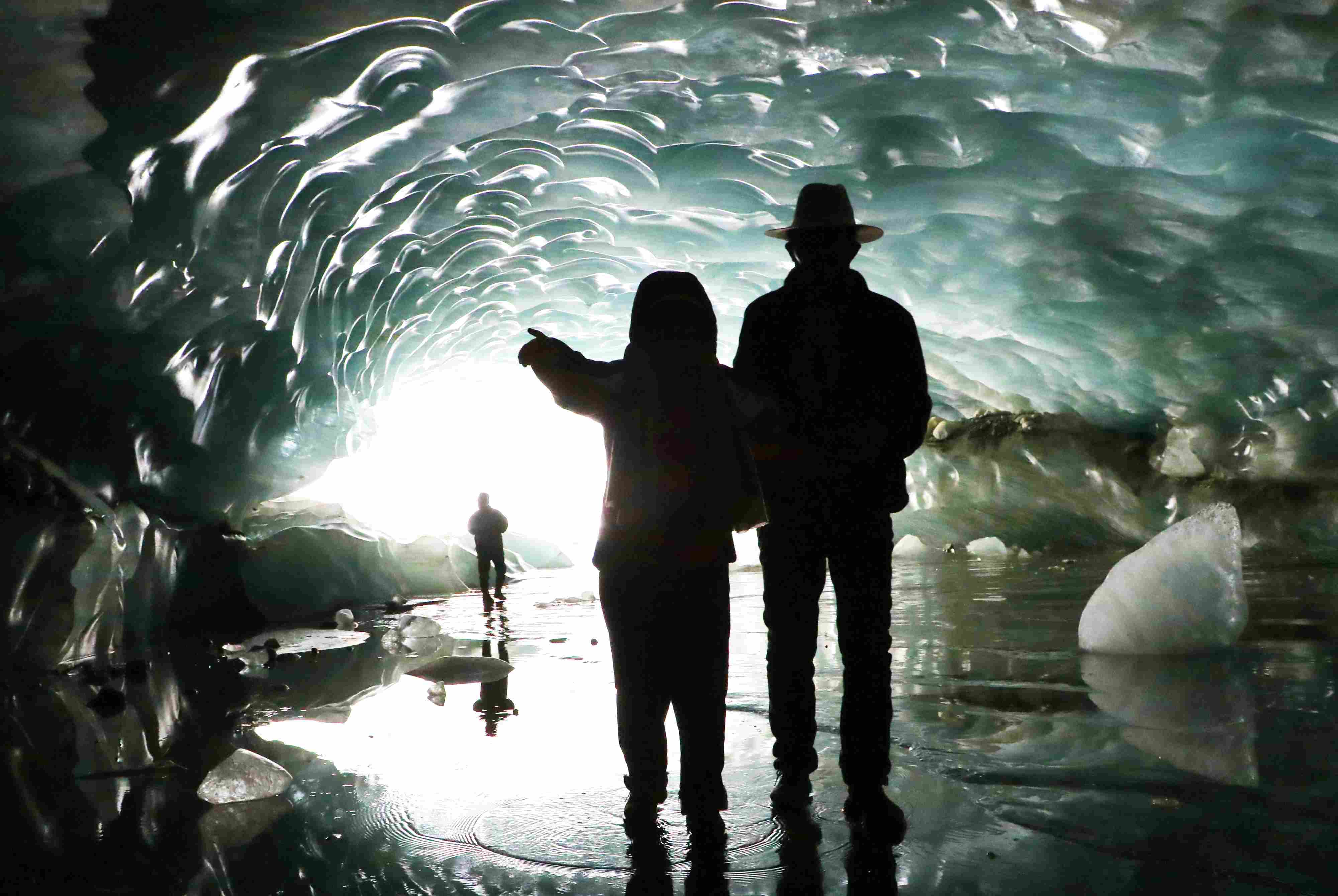 2023年5月21日,西藏昌都,游客在邊壩縣普玉一村游覽冰洞。 視覺中國