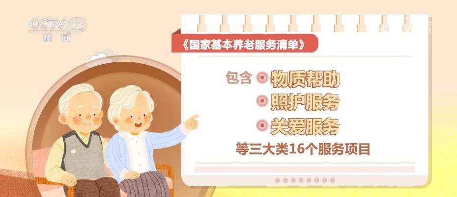 《國家基本養(yǎng)老服務清單》的內容,包含物質幫助、照護服務、關愛服務等三大類16個服務項目。