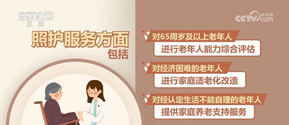 照護服務方面包括:對65周歲及以上老年人進行老年人能力綜合評估;對經濟困難的老年人進行家庭適老化改造;對經認定生活不能自理的老年人提供家庭養(yǎng)老支持服務;對特困老年人進行集中供養(yǎng)或者分散供養(yǎng);對國家和社會作出特殊貢獻的老年人提供集中供養(yǎng)服務;計劃生育特殊家庭老年人優(yōu)先享受機構養(yǎng)老。