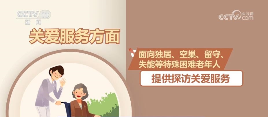 關愛服務方面,面向獨居、空巢、留守、失能等特殊困難老年人提供探訪關愛服務。