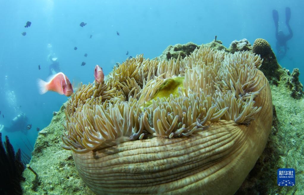 這是在蜈支洲島海域海洋牧場(chǎng)拍攝的小丑魚(yú)和海葵(5月18日攝)。