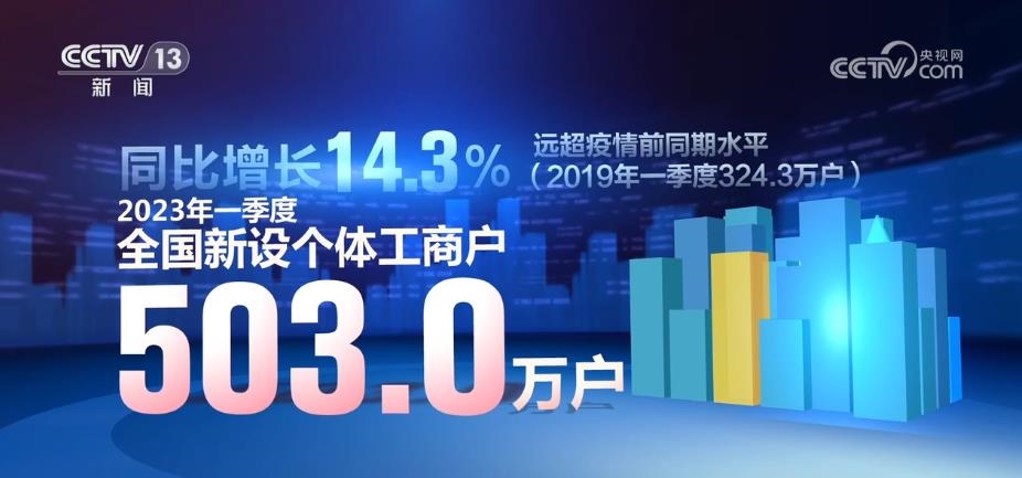 央視網(wǎng)消息:市場監(jiān)管總局5月22日發(fā)布最新數(shù)據(jù)顯示,2023年一季度,全國新設個體工商戶503.0萬戶,同比增長14.3%,遠超疫情前同期水平。