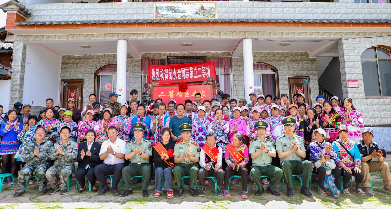 鑼鼓喧天,鞭炮齊鳴。近日,云南省楚雄彝族自治州大姚縣桂花鎮(zhèn)大河村張燈結(jié)彩、熱鬧非凡,武警云南總隊(duì)昭通支隊(duì)派出送喜報(bào)小分隊(duì)輾轉(zhuǎn)600余公里來到這里,聯(lián)合當(dāng)?shù)厝宋洳亢屯艘圮娙耸聞?wù)局,為榮立個(gè)人二等功的現(xiàn)役軍人鄒永金的家屬送去喜報(bào)、牌匾和慰問金。