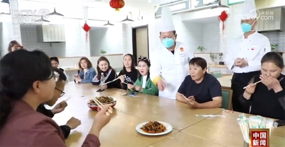 新疆塔城額敏縣居民 唐東升:主要是學炒菜技術、切配,那些師傅人很好,講了很多經驗。上菜老是上錯,我也沒管過,我也不會,后面經過培訓就好很多了。