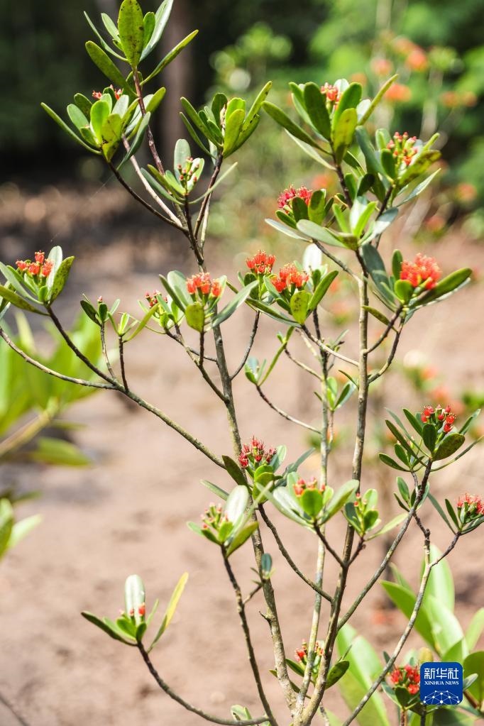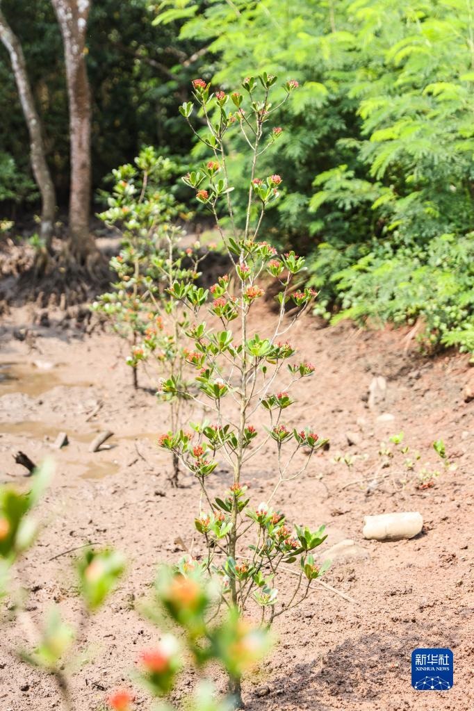 近日,在海南東寨港國家級自然保護區(qū)里的瀕危紅樹植物紅欖李迎來花期。據(jù)悉,紅欖李是珍稀瀕危紅樹植物、國家一級保護植物,被譽為紅樹林中的“大熊貓”。國內一度僅存14株。2014年,海南東寨港國家級自然保護區(qū)管理局成功培育出紅欖李幼苗,并建立紅欖李野外種植基地。如今這里已有超過20畝、約2300株的紅欖李。