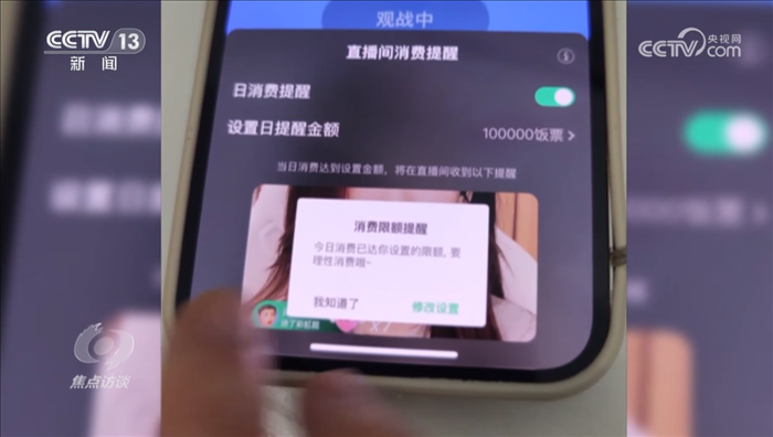 記者通過查詢發(fā)現(xiàn),有少數(shù)網(wǎng)絡(luò)平臺(tái)在用戶進(jìn)入直播間時(shí)會(huì)提供這樣一個(gè)選項(xiàng),用戶可以自己限定打賞額度,設(shè)定之后等到打夠額度時(shí),會(huì)收到相應(yīng)的提醒。不過,這和指導(dǎo)意見所要求的建立單場受賞總額、單次打賞額度合理設(shè)置上限,必要時(shí)建立打賞冷靜期等并不是一回事。