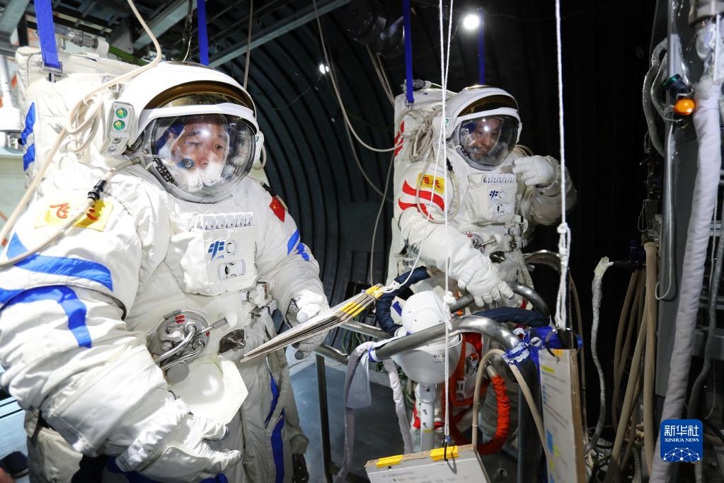 神舟十六號航天員乘組進行航天服操作訓練(2022年10月19日攝)。新華社發(fā)(徐部 攝)