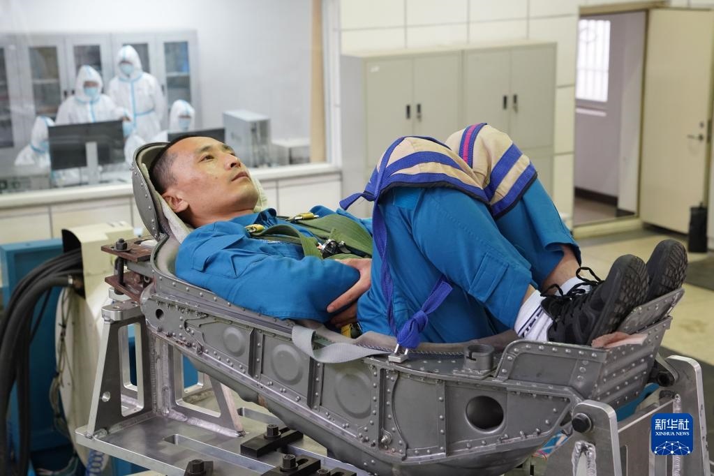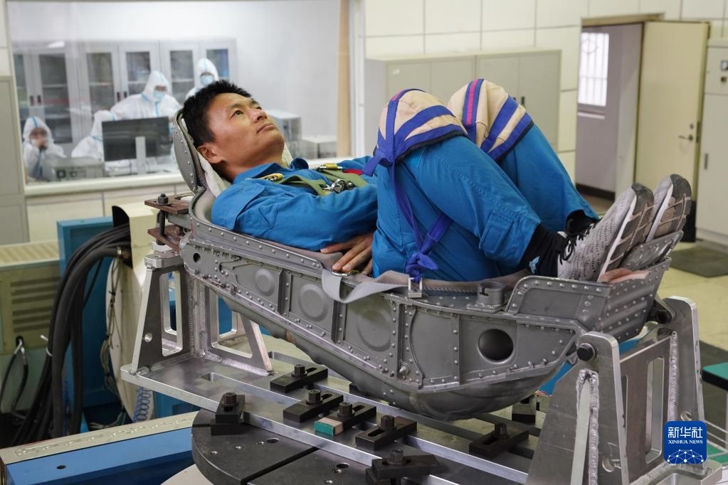 神舟十六號航天員朱楊柱在進行超重耐力訓練(2022年4月22日攝)。新華社發(fā)(王夏陽 攝)