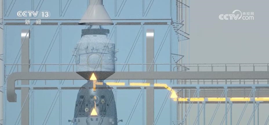 航天員到達(dá)發(fā)射塔架底部之后,他們就要登上專屬電梯,登上塔架的9層平臺(tái),這是他們離開(kāi)地面的第一步。在9層平臺(tái),三名航天員一路步行移動(dòng)到整流罩旁邊,進(jìn)行登船準(zhǔn)備工作。9層平臺(tái)對(duì)應(yīng)的是飛船軌道艙的位置。每名航天員的身邊都會(huì)有專門的陪護(hù)崗工作人員進(jìn)行陪同護(hù)送。