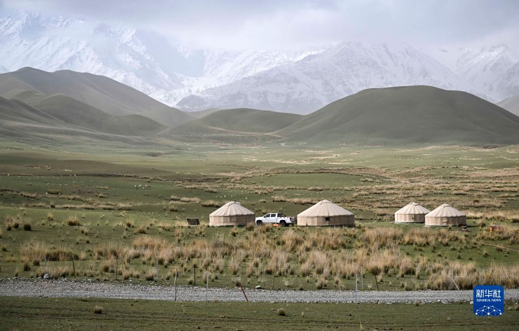 5月31日在新疆和田地區(qū)策勒縣昆侖山區(qū)拍攝的一處高山牧場(chǎng)景觀(guān)。新華社記者 胡虎虎 攝