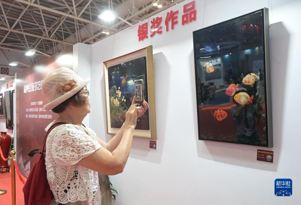 當(dāng)日,第十屆中國(guó)(福州)金魚(yú)文化節(jié)在福州海峽國(guó)際會(huì)展中心舉行,金魚(yú)與以金魚(yú)為題材的福州傳統(tǒng)漆藝作品同場(chǎng)斗艷,展區(qū)內(nèi)除展示第六屆中國(guó)(福州)金魚(yú)大賽獲獎(jiǎng)的金魚(yú)外,還展示了首屆福州“金魚(yú)”漆藝創(chuàng)新大賽的近百件作品。新華社記者 林善傳 攝