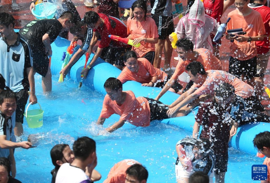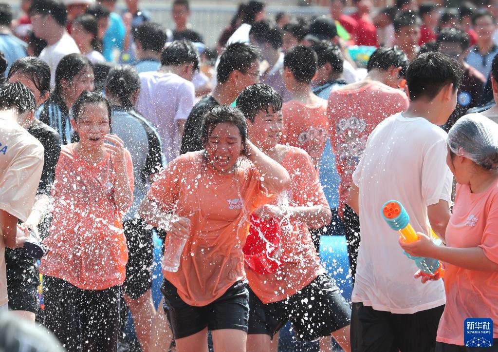 當日,廣西南寧市第三中學初中部青秀校區(qū)組織1500多名初三學生,在校園舉行潑水活動,以獨特方式讓學生們減輕考前壓力。