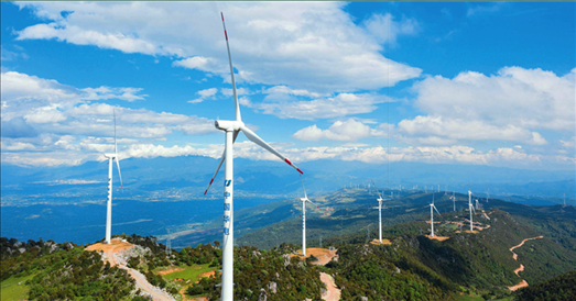 位于鹽源縣棉埡鎮(zhèn)的四川鹽源華電新能源有限公司的涼風(fēng)坳風(fēng)電場一角(2022 年 6 月 20 日攝)江宏景攝 / 本刊