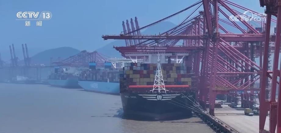 央視網(wǎng)消息:近日,我國(guó)自主研制的超大型集裝箱船“地中海米歇爾卡佩里尼”輪首航。該輪首站??繉幉ㄖ凵礁鄞┥礁蹍^(qū)集裝箱碼頭,從此開(kāi)啟其航運(yùn)之旅。這已是穿山港區(qū)78天內(nèi)迎來(lái)的第3艘超大型集裝箱貨輪首航。