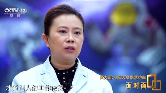吳大蔚:再不想吃也要好好吃,好好吃好了才能有勁兒好好干活。所以航天員支持中心跟其他支持中心不太一樣,它對的是一個生命,我不是對著一臺機(jī)器,看它的指標(biāo)就可以了,遠(yuǎn)遠(yuǎn)不是,是要投入大量的感情,把他當(dāng)成親人一樣,真正用心去做,才能把人的工作做好。