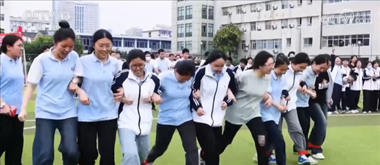 在浙江寧波寧??h知恩中學(xué),學(xué)校為700多名高三學(xué)生組織了一場快樂迎考、趣味闖關(guān)活動。節(jié)奏輕快的竹竿舞、活潑有趣的“兩人三足”,讓同學(xué)們在游戲中放松心情。