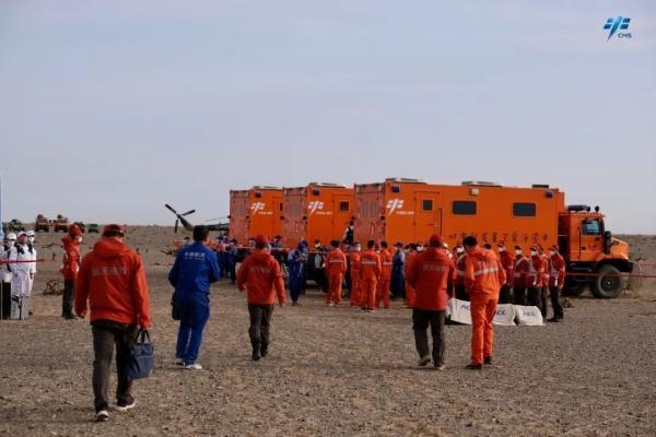 2023年6月3日21時29分,神舟十五號載人飛船與空間站組合體成功分離。地面搜救人員和媒體提早駐守于東風著陸場,盼望著一場盛大的邂逅。