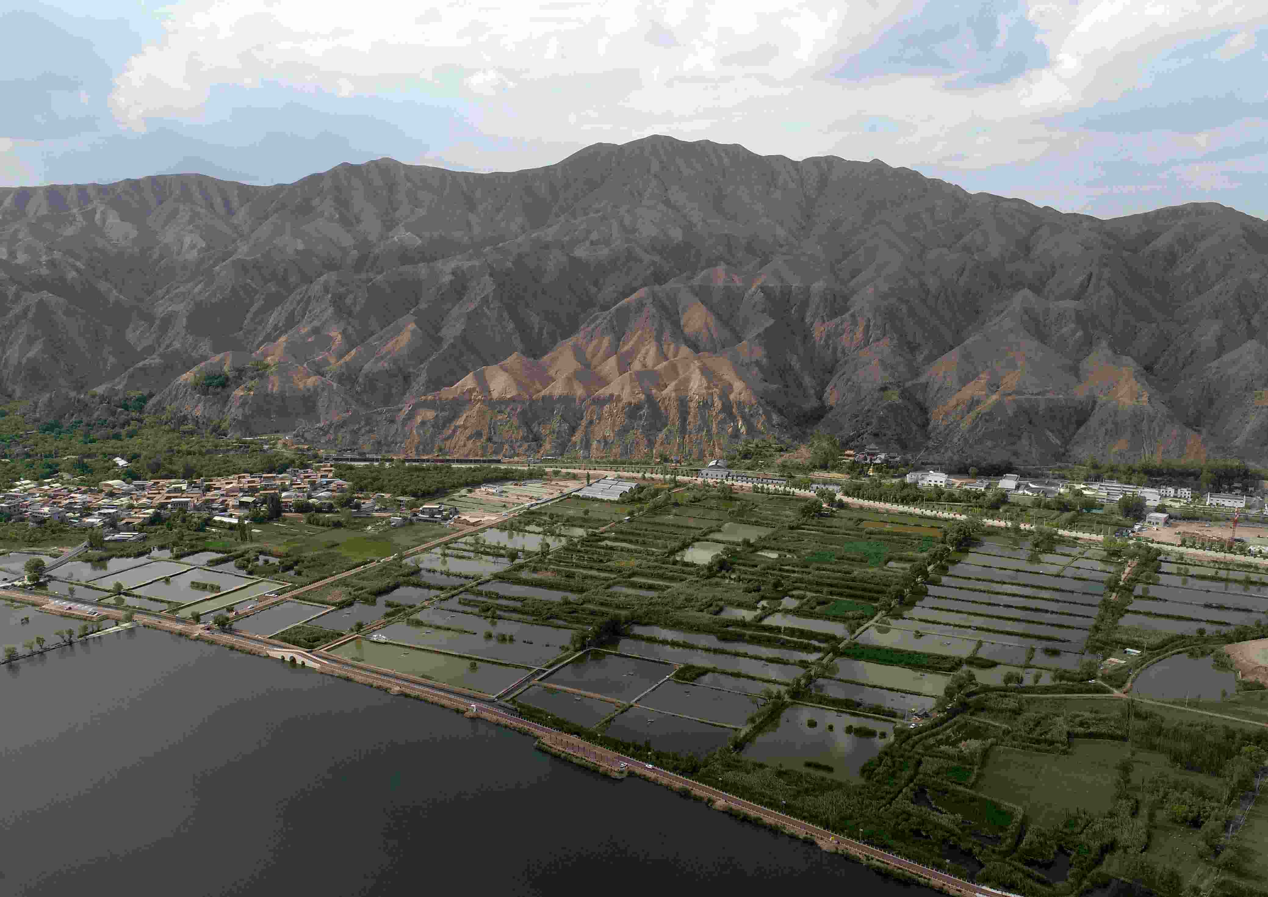 初夏時(shí)節(jié),甘肅省永靖縣太極島黃河濕地風(fēng)光秀麗,島上蘆草叢生,綠意盎然,游客乘船在蘆葦蕩里游玩。沿河公路與狹長(zhǎng)的黃河交相輝映,星羅棋布的人工魚塘宛如一塊塊玉石鑲嵌在大地上,勾勒出一幅美妙的山水田園畫卷。近年來(lái),永靖縣依托太極島黃河濕地豐富的生態(tài)資源,將文旅產(chǎn)業(yè)與生態(tài)保護(hù)相結(jié)合,進(jìn)一步提升水產(chǎn)養(yǎng)殖、濕地保護(hù)以及休閑旅游功能。