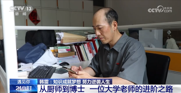 今年42歲的大學(xué)老師韓雷講述自己17年的求學(xué)故事:從廚師到自考專科、本科再到考取南開大學(xué)博士。