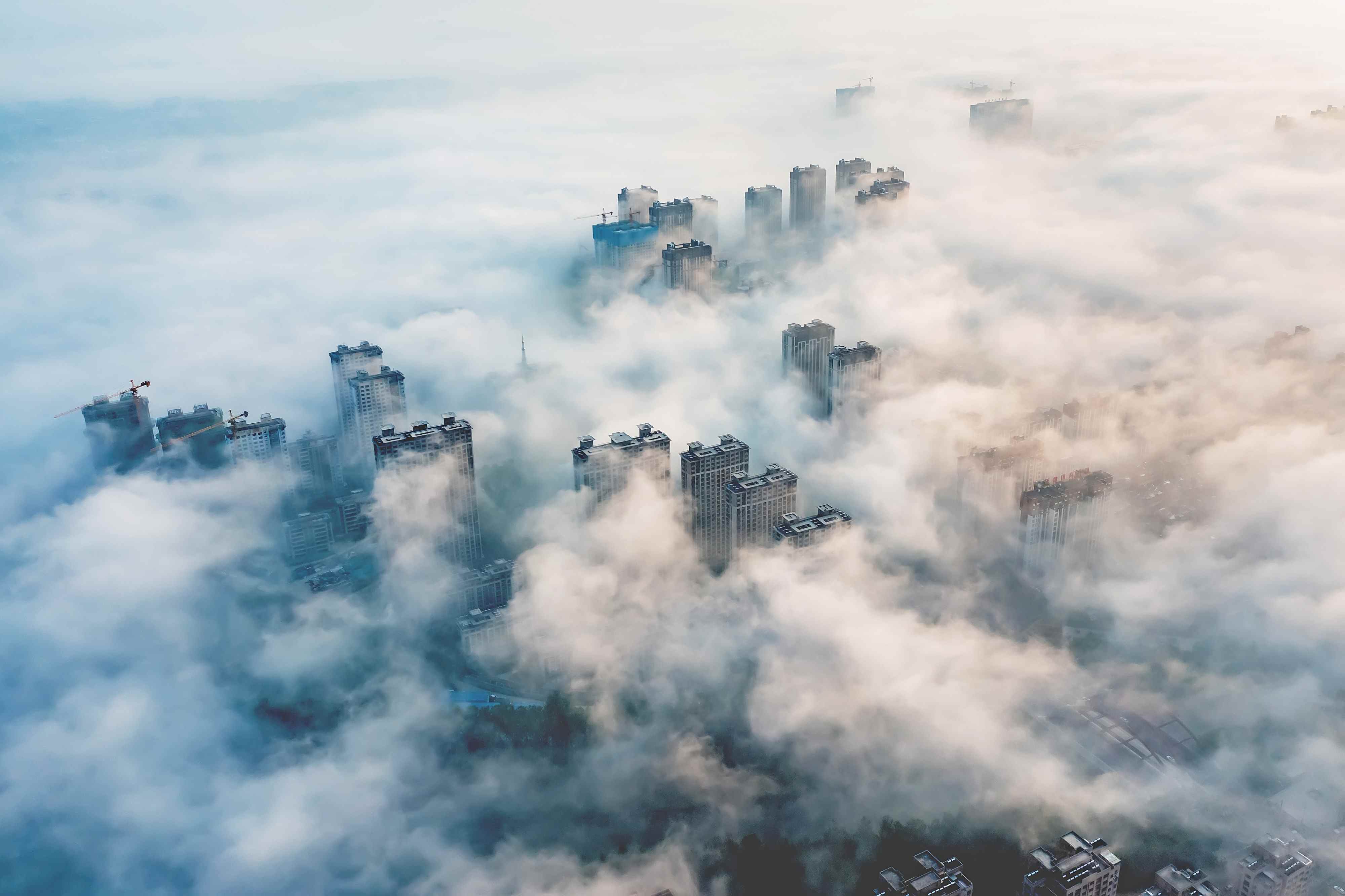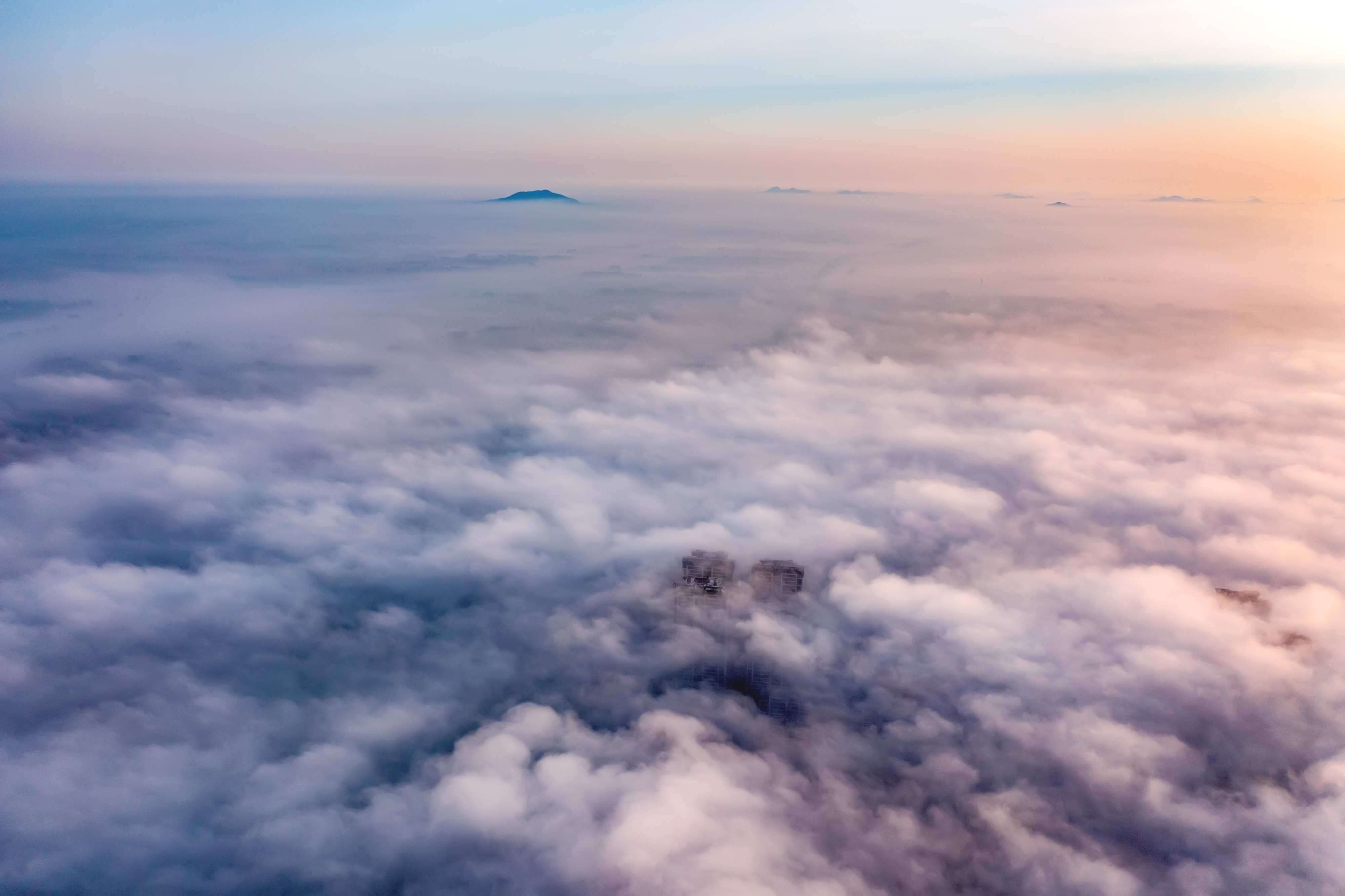 2023年6月11日,江蘇連云港東??h,城市上空云霧繚繞,蔚為壯觀。 視覺(jué)中國(guó)