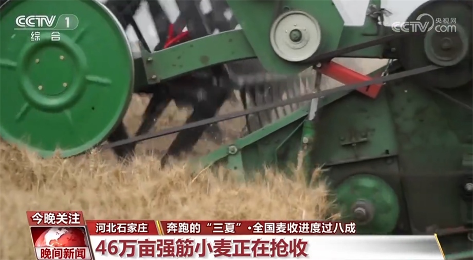 河北省石家莊市藁城區(qū)的46萬畝強(qiáng)筋小麥正在搶收,今年這里的小麥進(jìn)一步推行規(guī)模化種植、標(biāo)準(zhǔn)化生產(chǎn)、專業(yè)化收儲(chǔ)。
