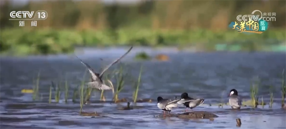 現(xiàn)在我們來到位于河北雄安新區(qū)安新縣白洋淀濕地,這里岸邊花香撲鼻、水波蕩漾、鷗鷺齊飛,在剛剛修復完工的藻苲淀,39座大小島嶼中有兩座還成為了鳥類保護的棲息地。
