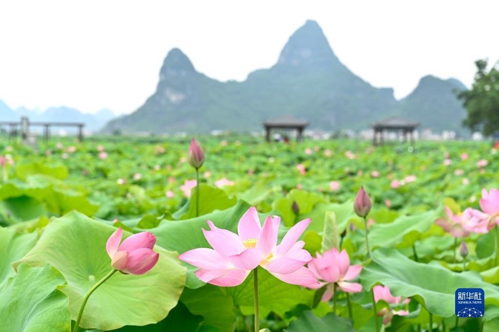時(shí)下,廣西柳州市柳江區(qū)百朋鎮(zhèn)萬(wàn)畝荷塘里的各色荷花競(jìng)相綻放,吸引游客前來(lái)賞花游玩。新華社發(fā)(黎寒池 攝)