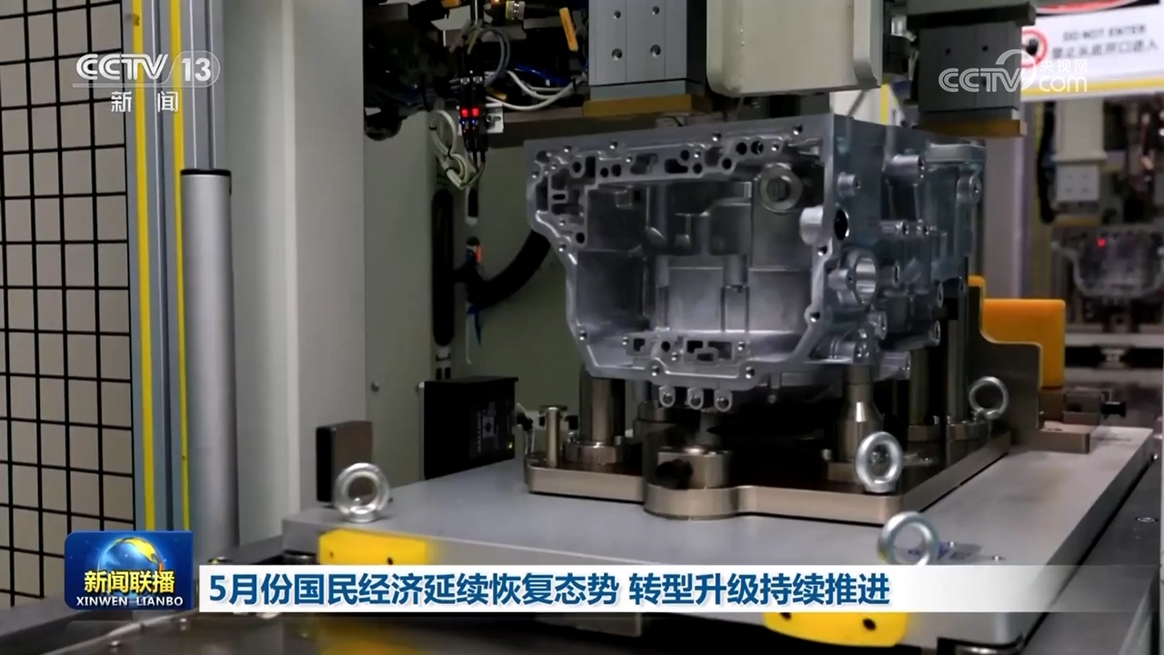 從工業(yè)看,生產(chǎn)平穩(wěn)增長(zhǎng)。5月份,全國(guó)規(guī)模以上工業(yè)增加值同比增長(zhǎng)3.5%。其中,裝備制造業(yè)增加值同比增長(zhǎng)8%,對(duì)規(guī)模以上工業(yè)增長(zhǎng)貢獻(xiàn)率超過(guò)七成。