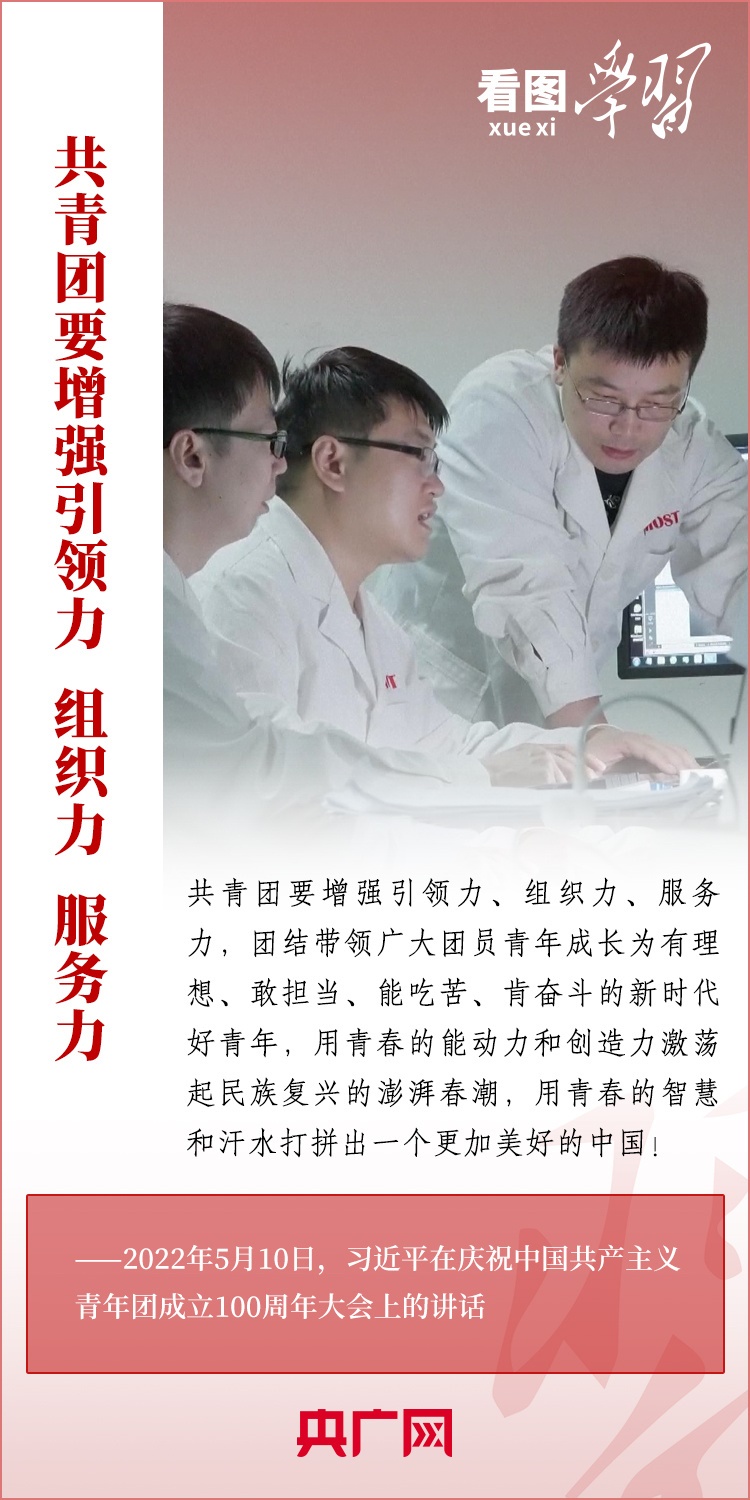 中國共青團是中國青年運動的先鋒隊,是黨的忠實助手和可靠后備軍。習近平總書記高度重視共青團工作,強調(diào)共青團要增強引領力、組織力、服務力,團結(jié)帶領廣大團員青年成長為有理想、敢擔當、能吃苦、肯奮斗的新時代好青年,用青春的能動力和創(chuàng)造力激蕩起民族復興的澎湃春潮,用青春的智慧和汗水打拼出一個更加美好的中國!