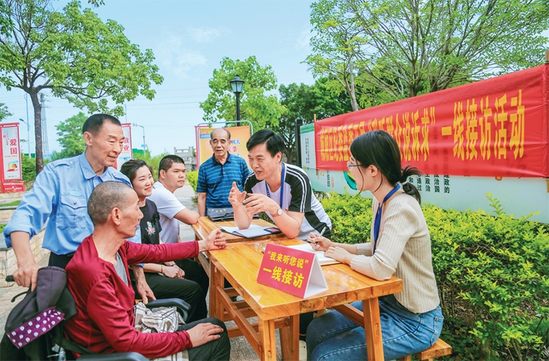 2023年5月24日,福建省莆田市城廂區(qū)紀委監(jiān)委在東海鎮(zhèn)大埔村開展“我聽群眾說訴求”一線接訪活動。 求是圖片 吳震/攝