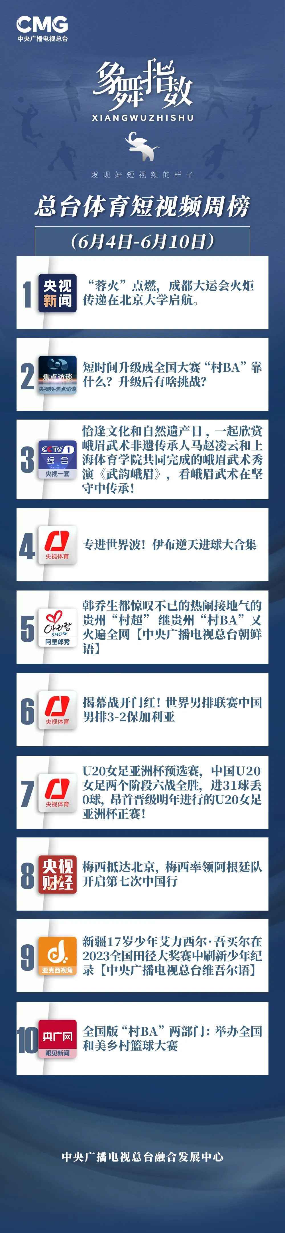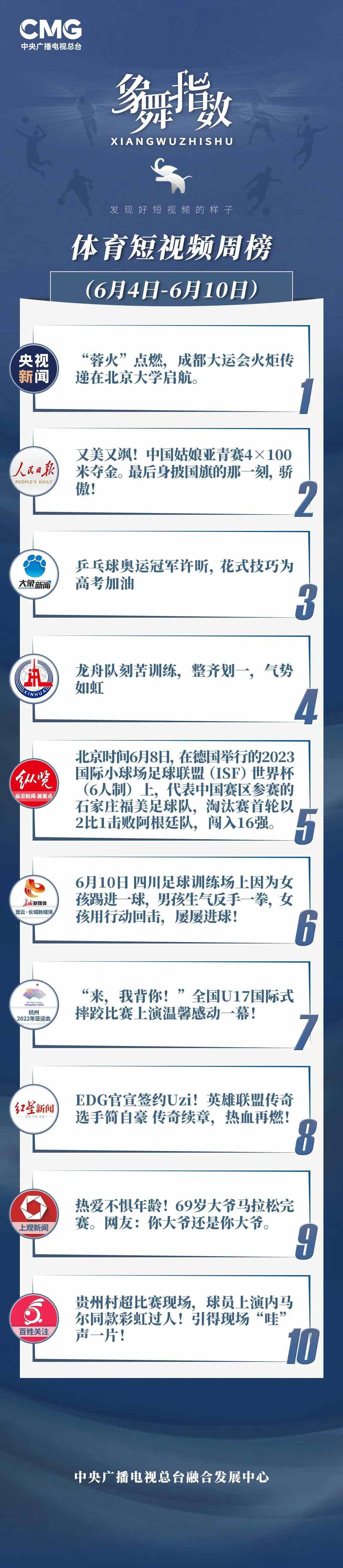 象舞指數(shù)|體育短視頻周榜(6月4日—6月10日)