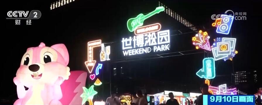 在我身后有一只非??蓯?ài)的小松鼠,它的名字叫做“淞淞”,也是本次世博淞園集市設(shè)計(jì)的代表的卡通形象。我也注意到,隨著夜幕的降臨,集市的人流在逐漸地增加。像平時(shí)工作日,每天的客流量可能在三四千人,到了周末會(huì)增加到一萬(wàn)人以上。集市的占地面積大約是7000平方米,集合了咖啡美食、潮流戶(hù)外運(yùn)動(dòng)、露營(yíng)以及文創(chuàng)產(chǎn)品等的各大板塊,力求打造一場(chǎng)獨(dú)具品質(zhì)、同時(shí)又容納多種元素的嘉年華的場(chǎng)景。