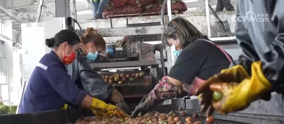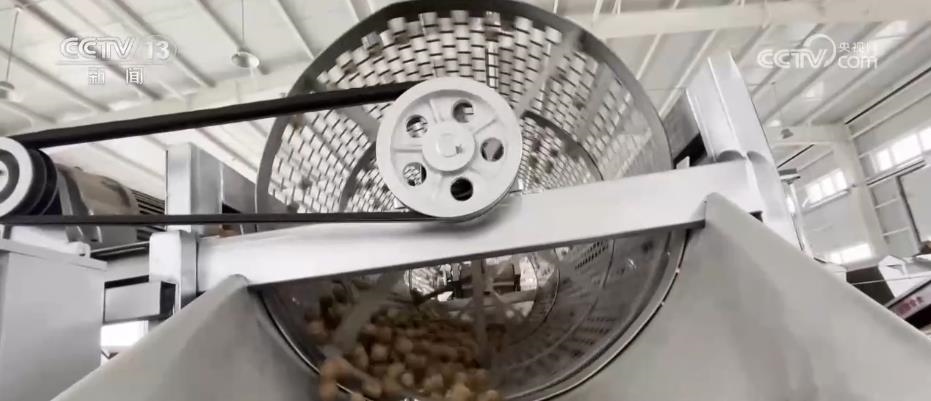 從田間地頭集中收購的青皮核桃會被送往加工車間,通過現(xiàn)代化機器設(shè)備首先將核桃外層的青皮脫離,此時黃色的果殼就會顯現(xiàn)。然后進行清洗去除掉核桃外殼的雜質(zhì),緊接著就是利用烘干設(shè)備將核桃烘干,之后再利用分選設(shè)備將大小不均的核桃進行篩選分類,最后一步就是將分類好的成品核桃打包裝箱銷往各大市場。