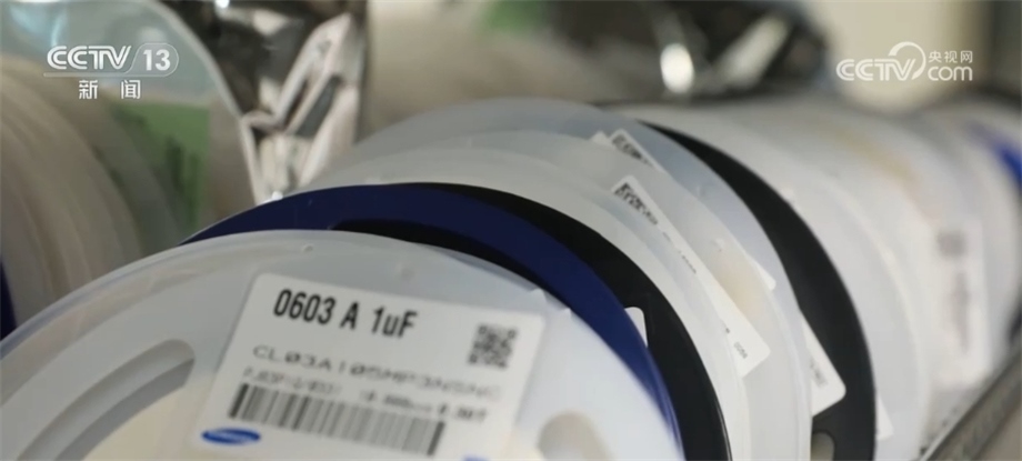 達(dá)豐(重慶)電腦有限公司資深經(jīng)理 劉洪亮:這就是我們即將要投到生產(chǎn)線上去生產(chǎn)的材料,因?yàn)樗荢MT工藝流程的貼片技術(shù),所以它的材料都是成卷包裝的。這一卷,你看這個(gè)數(shù)量,4000個(gè),這個(gè)更夸張,一卷1萬個(gè)。