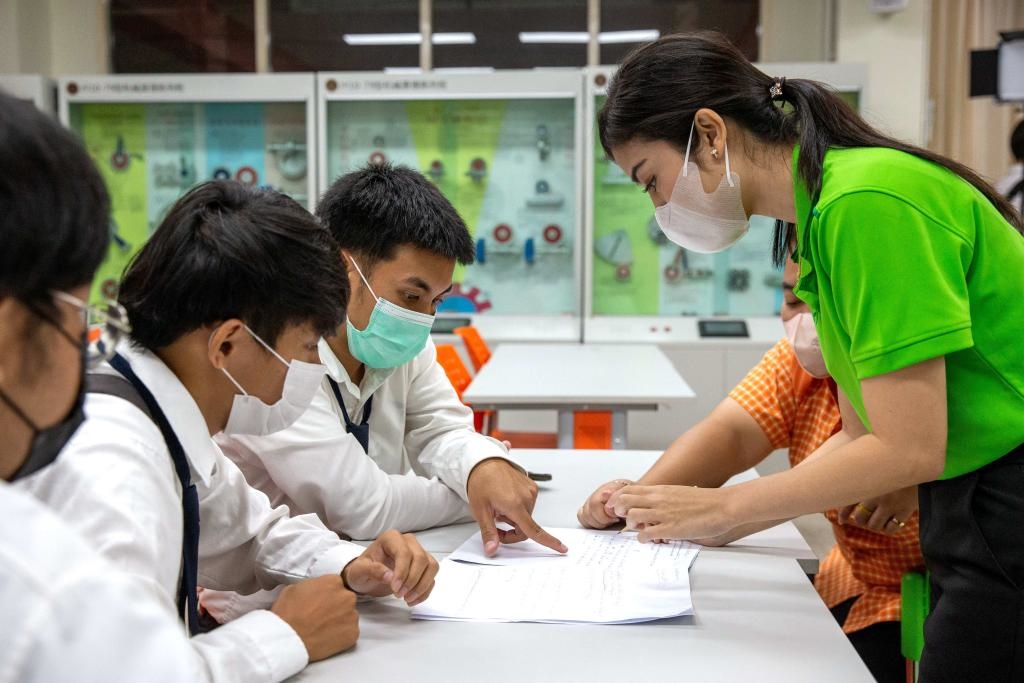 3月14日,在泰國(guó)大城府大城技術(shù)學(xué)院魯班工坊,教師(右一)給學(xué)生上課。新華社記者 王騰 攝