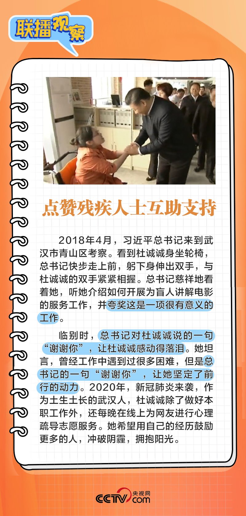 無論是在地方還是在中央工作,習(xí)近平都對殘疾人群體格外牽掛,給他們留下了很多溫暖的記憶。黨的十八大以來,以習(xí)近平同志為核心的黨中央對殘疾人事業(yè)格外關(guān)心、格外關(guān)注,殘疾人的獲得感、幸福感、安全感顯著增強(qiáng)。