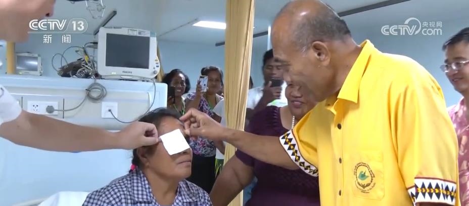 任務過程中,共有37名患者完成眼疾手術(shù)重見光明。這是一名受白內(nèi)障困擾接近10年的基里巴斯居民,聽到“和平方舟”能開展白內(nèi)障手術(shù)的消息,他在家人的陪伴下第一時間來到“和平方舟”眼科診室。中國醫(yī)生為其制定了全流程、精準化的診療方案,讓她重見光明。