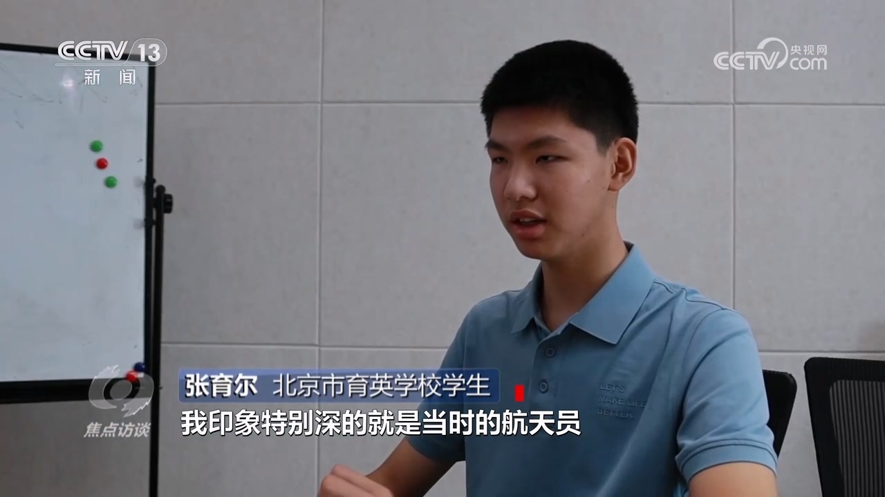 北京市育英學校學生張育爾:“我印象特別深的是當時航天員拿針筒把氣泡注射到水里,然后形成了一個類似于放大鏡的視覺效果,看到這個感覺很新鮮、很科幻,一開始是好奇心驅動了,后來就開始了解這方面的東西?!?/p>